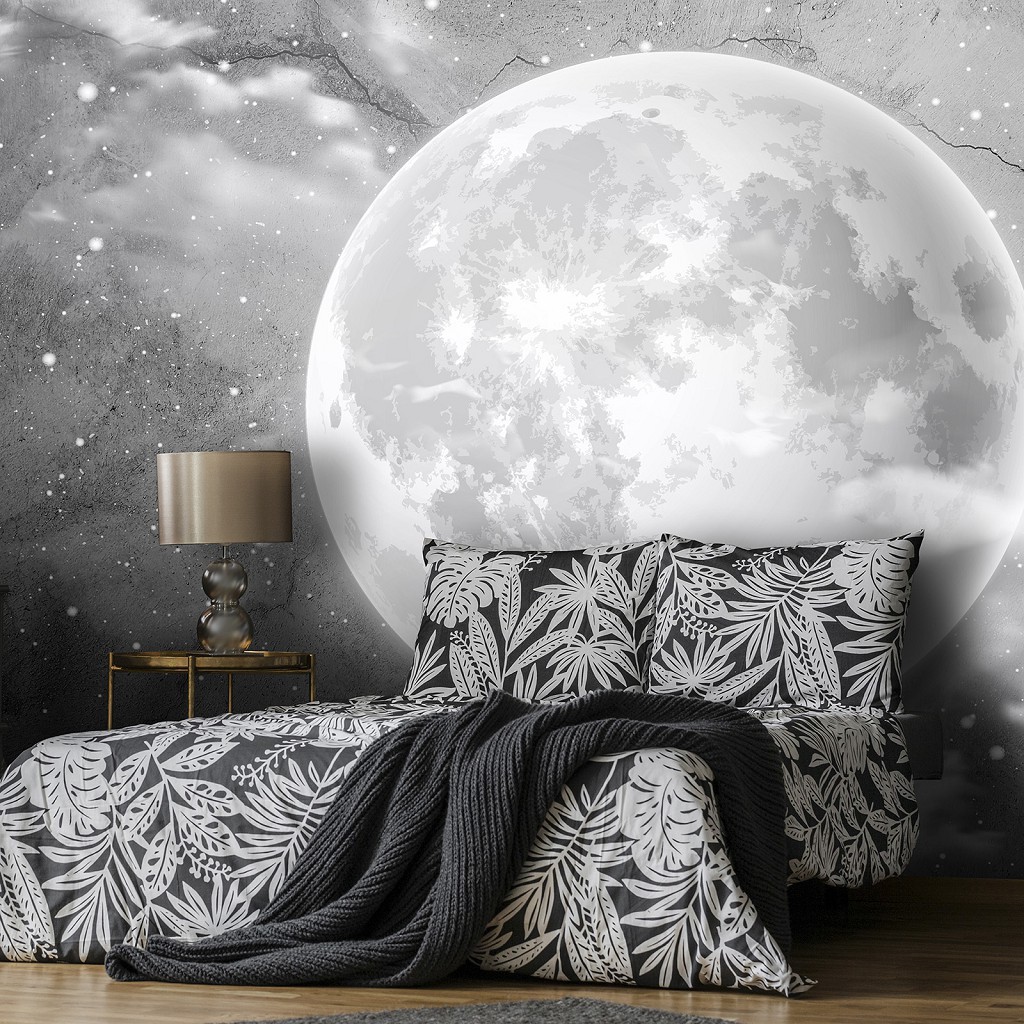 Космос фото обои 254 x 184 см Черно-белая луна на бетоне (13574P4)+клей