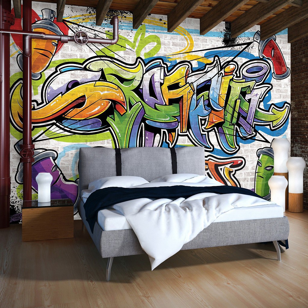 Фото обои 368x254 см Для подростков Красочное граффити на кирпичной стене (1399P8)+клей