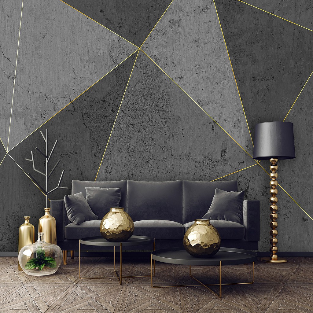 Отзывы о Флизелиновые фотообои в треугольники 368 x 280 см Абстракция Структура Золотые линии на бетоне (13559V10)+клей