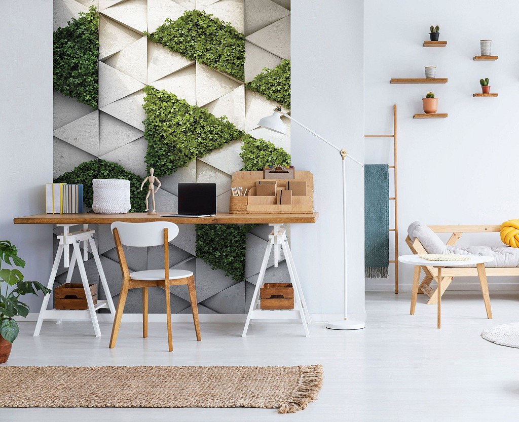 Отзывы о Флизелиновые фото обои геометрический узор 184 x 254 см 3D Бетонные треугольники и зеленая трава (13806V4A)+клей