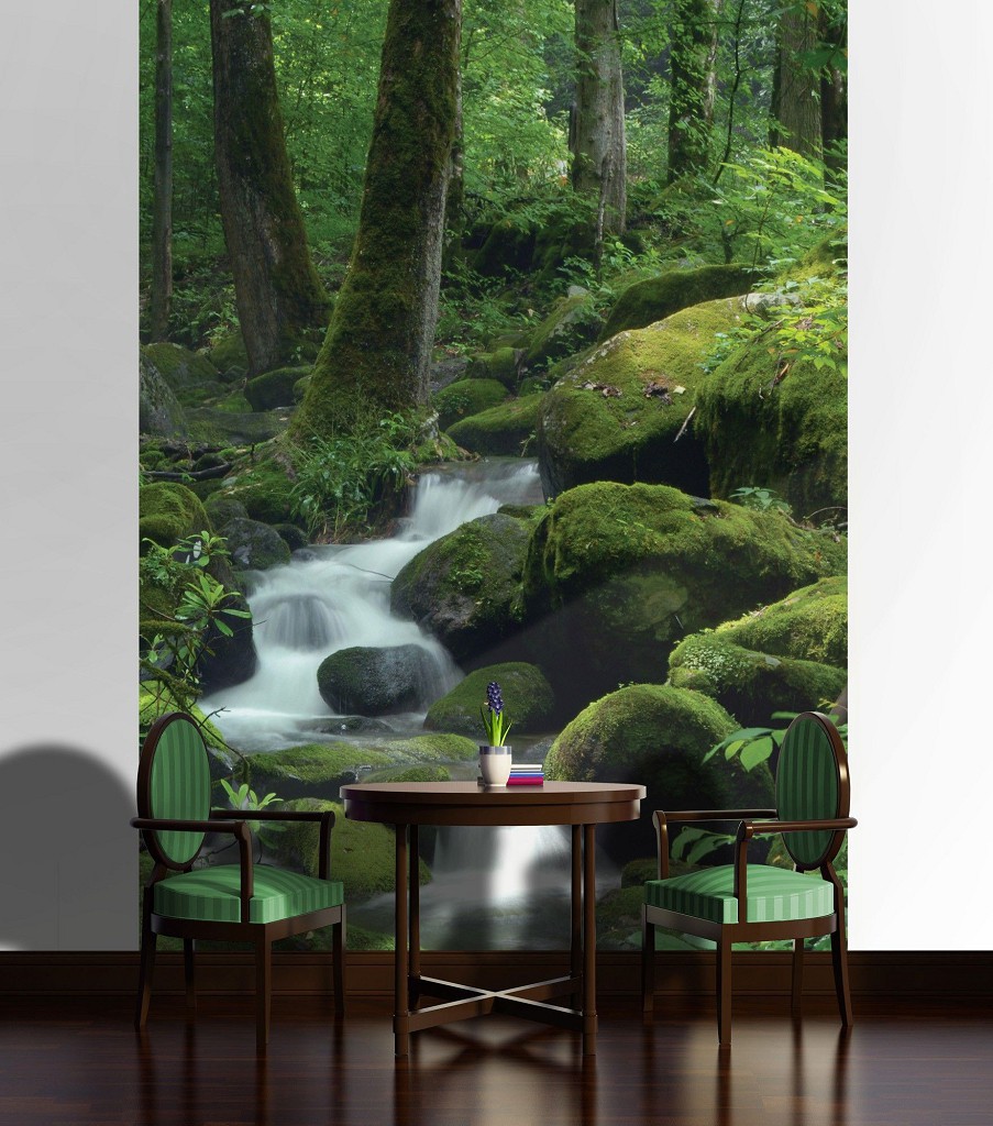 Флизелиновые фотообои в узкой прихожей Природа Ландшафт 184x254 см 3Д Ручей в зеленом лесу (163V4A)+клей