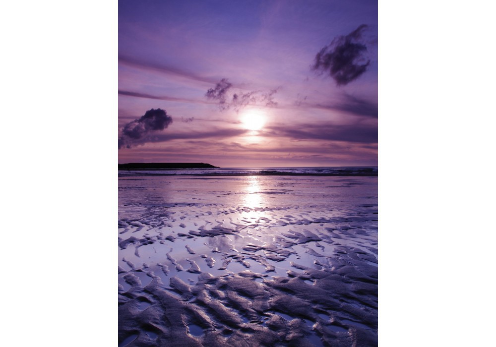 Флизелиновые фотообои в гостиную 184x254 см Фиолетовый закат на море (122V4A)+клей