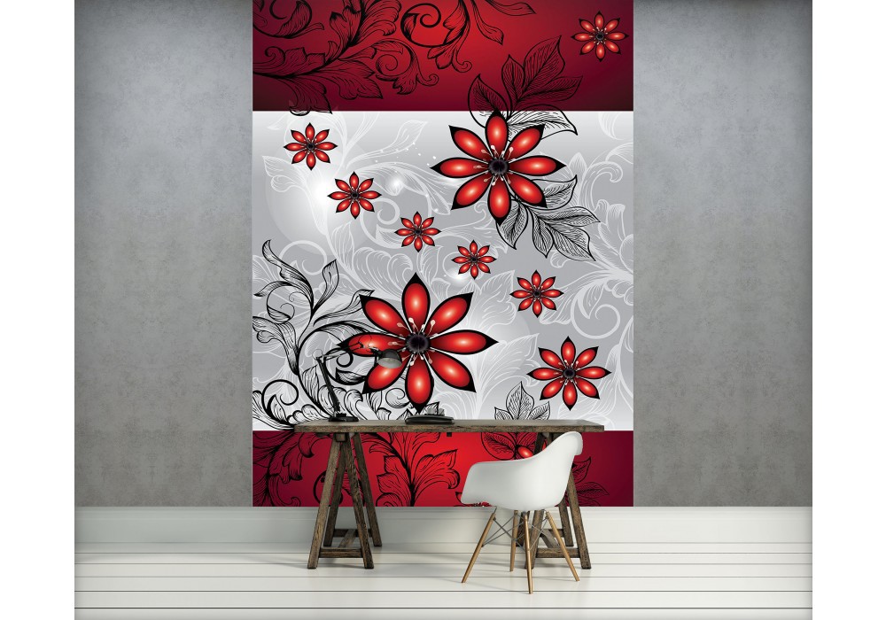 Флизелиновые фотообои в зал 184x254 см Красные цветы на светлом фоне (1211V4A)+клей