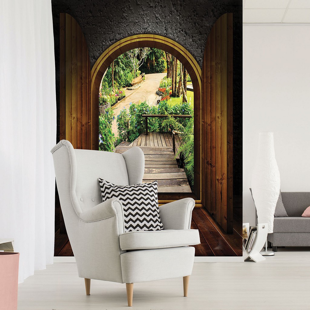 Флизелиновые фотообои с природой в интерьере 184x254 см Сад (11354V4A)+клей
