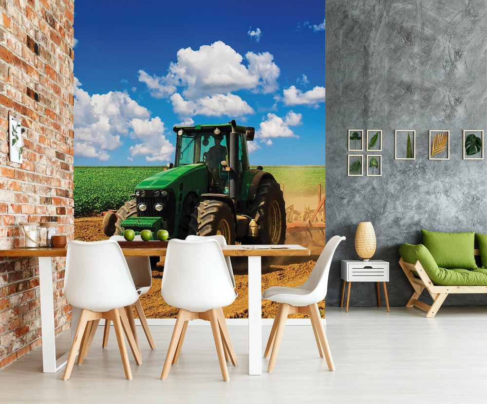 Отзывы о Флизелиновые 3д фотообои природа 184x254 см Зеленый трактор на поле (1909V4A) +клей
