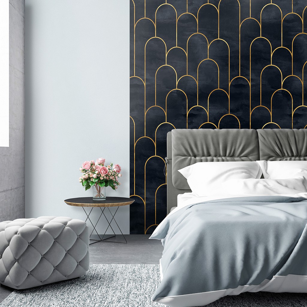Отзывы о Флизелиновые фото обои абстракция Стиль арт-деко Гламур 206 x 275 см Золотой мотив на черном камне (13616VEA)+клей
