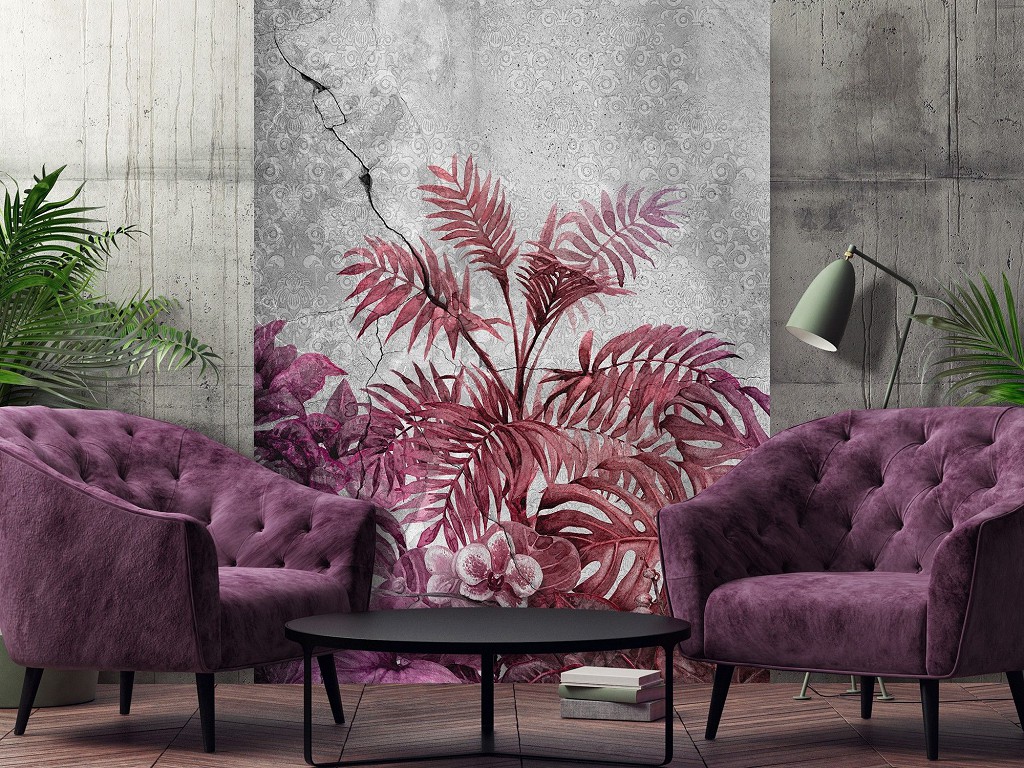 Флизелиновые фотообои 206 x 275 см Цветы - Розовые растения на бетонной стене (13577VEA)+клей