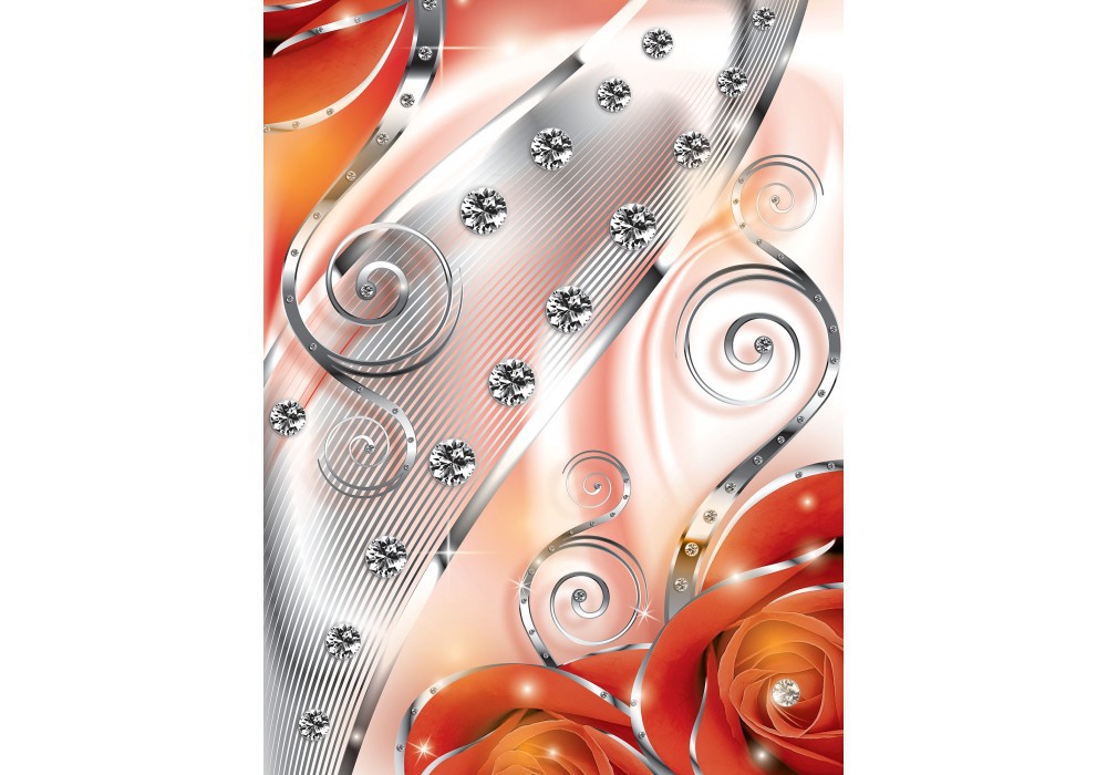 Отзывы о Флизелиновые фотообои с цветами на стену 206x275 см 3Д Бутоны красных роз - бриллианты и вензеля (2495VEA)+клей