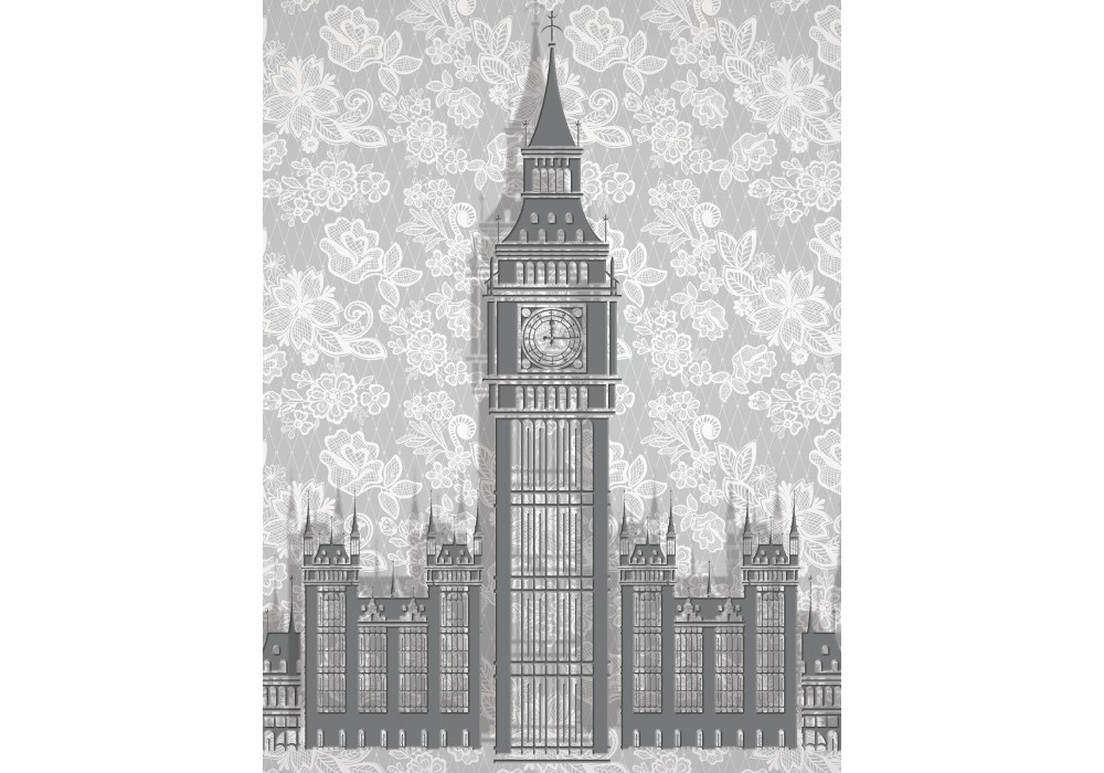 Флизелиновые фотообои город Лондон 206x275 см Биг-бен на сером цветочном фоне (2970VEA)+клей