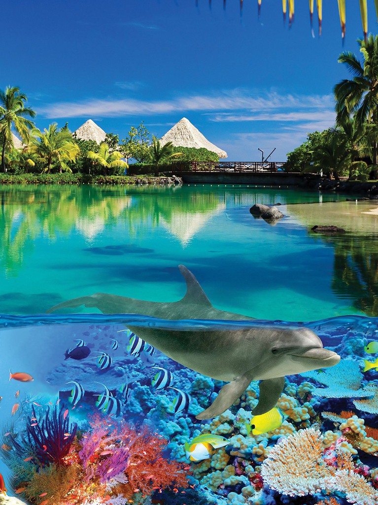 3д Морские рыбки кораллы и дельфин флизелиновые фотообои 206x275 см Мальдивы и подводный мир (3356VEA)+клей