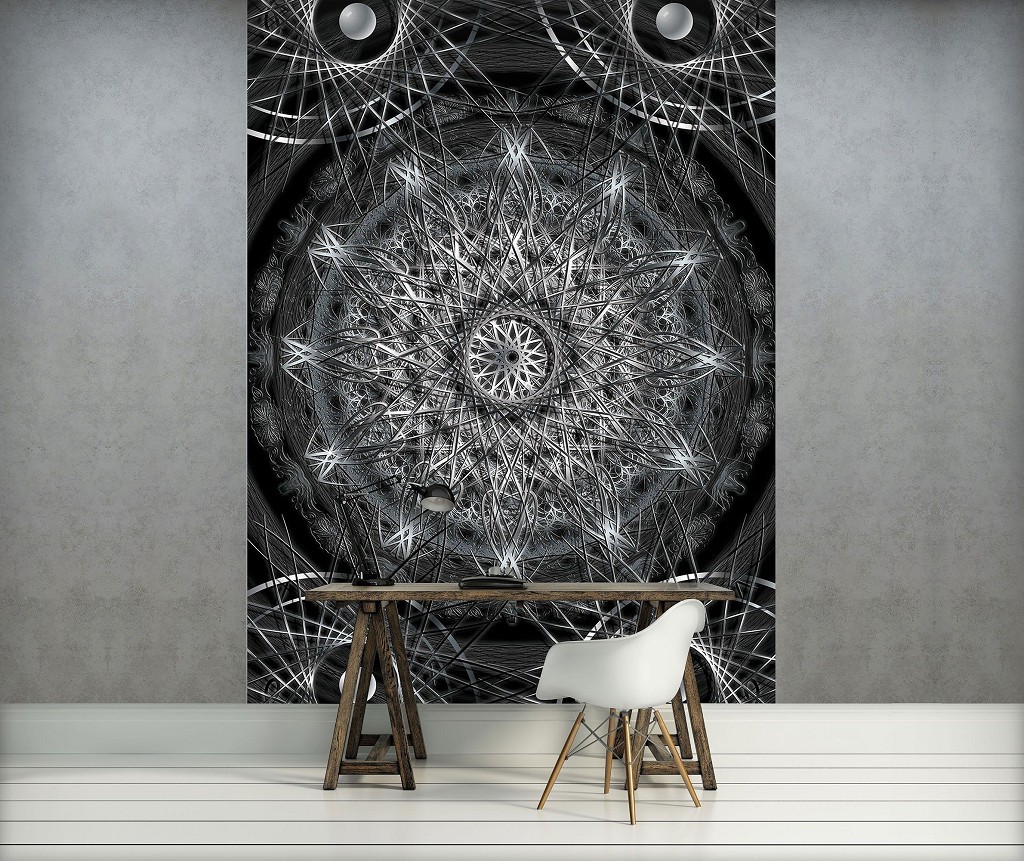 Отзывы о Флизелиновые фотообои круги 206x275 см Серебряная мандала на черном фоне (3050VEA)+клей