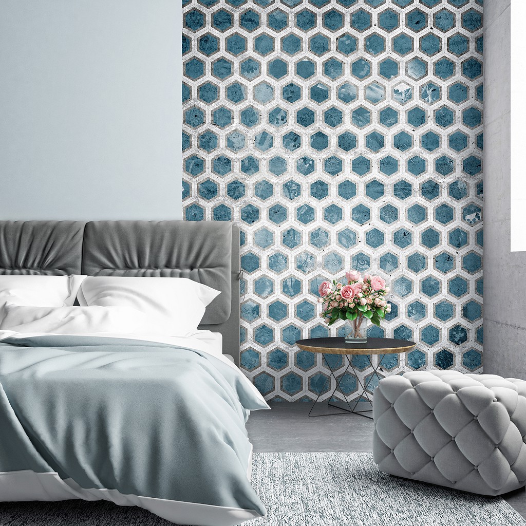 Флизелиновые обои фото 206x275 см Шестиугольники в холодных тонах (13553VEA)+клей