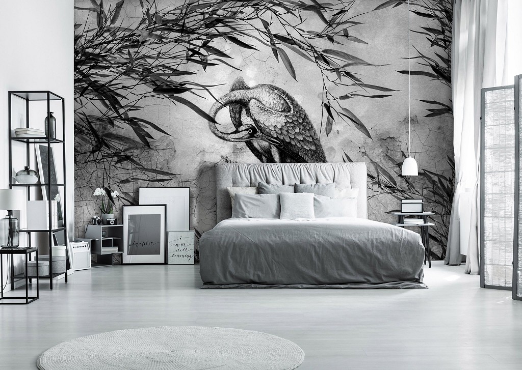 Отзывы о Флизелиновые фото обои бетонная стена 254 x 184 см Птица Черно-белый журавль (13695V4)+клей