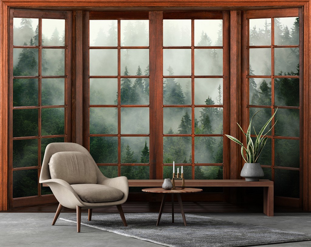 Отзывы о Природа флизелиновые фотообои 254x184 см 3D эффект окна Лес в тумане (14206V4)+клей
