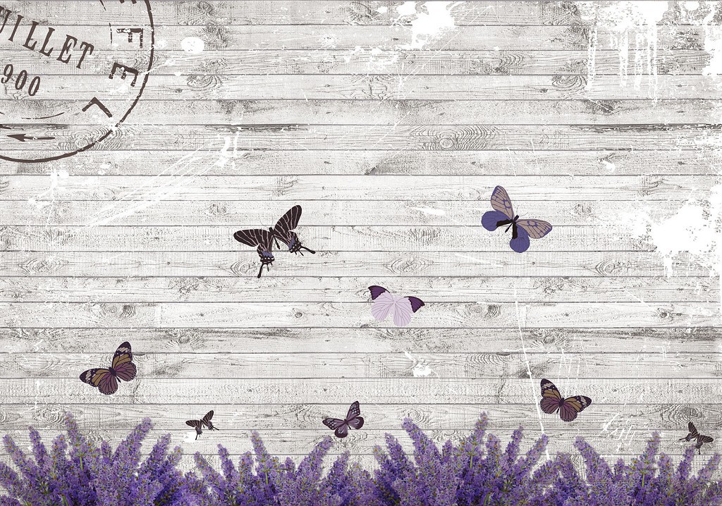 Отзывы о Флизелиновые фотообои для зала 254x184 см Бабочки и цветы на серых досках (2241V4)+клей