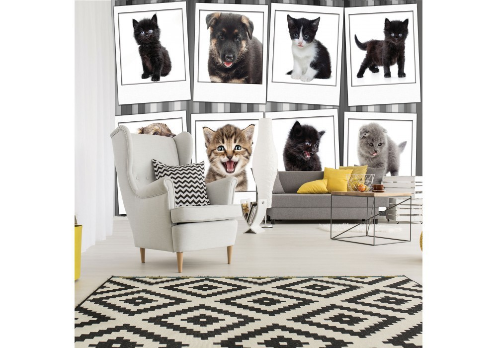 Флизелиновые фотообои коллаж домашними животных 254x184 см Фотографии щенков и котят (10453V4)+клей