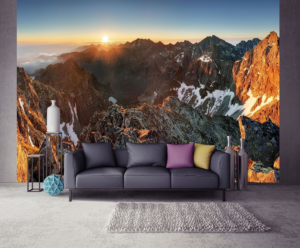 Флизелиновые фотообои 3Д Природа Горы Пейзаж 254x184 см Восход солнца в Татрах (10509V4)+клей