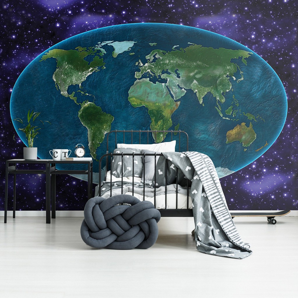 Отзывы о Флизелиновые фотообои для зала 254x184 см Карта мира на фоне звезд (10251V4)+клей