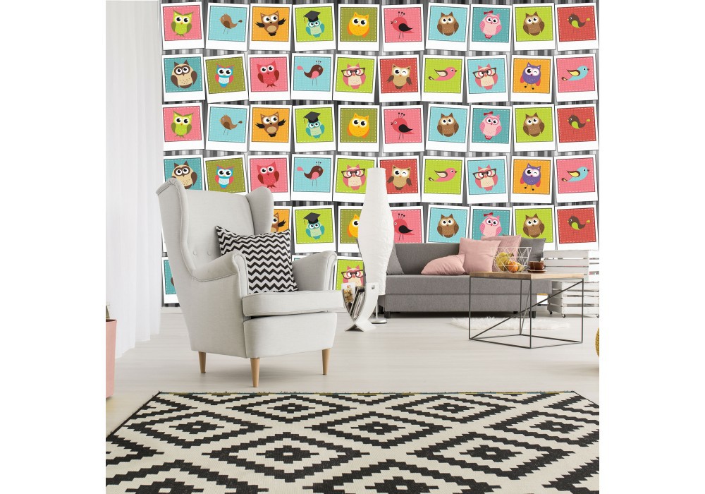 Отзывы о Детские флизелиновые фотообои для стен коллаж птиц 254x184 см Картины разноцветных сов (10452V4)+клей
