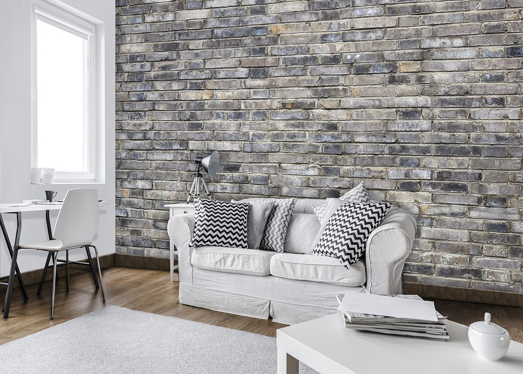 Флизелиновые 3д фото обои серые кирпичи 254x184 см (13035V4)+клей