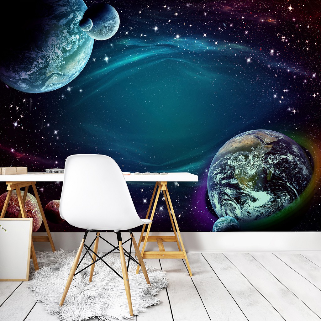 Флизелиновые фото обои звездное небо на стену Космос Луна Галактика 254x184 см Планеты и звезды (12918V4)+клей