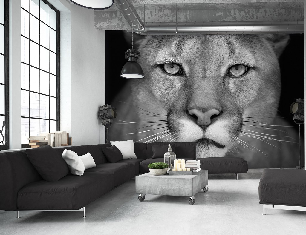 Флизелиновые фото обои животные 254x184 см Черно-белая львица (12718V4)+клей