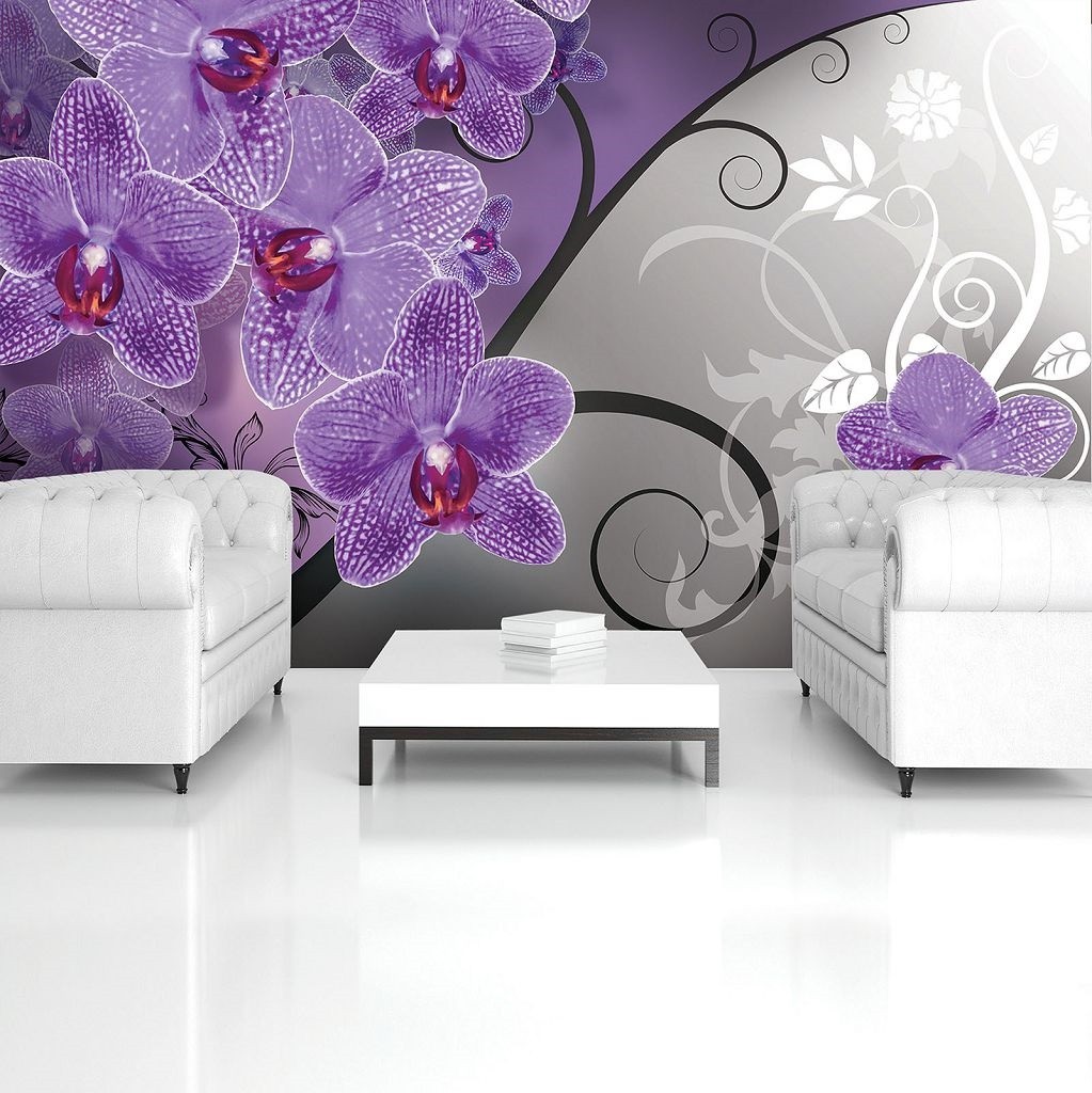 Отзывы о Флизелиновые фотообои в спальню 254x184 см Нарисованные фиолетовые орхидеи (1280V4)+клей