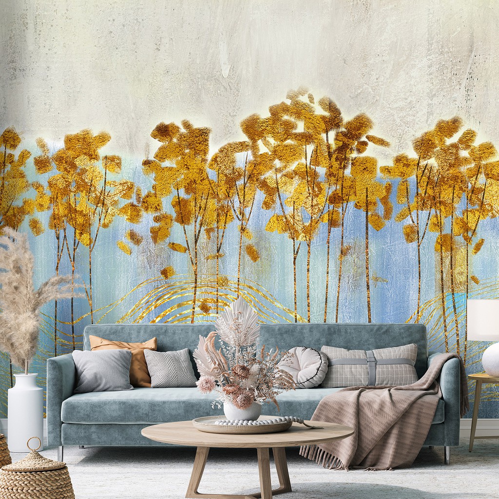 Цветы флизелиновые фотообои 254x184 см Орнамент Золотые Листья Арт Природа (14109V4)+клей