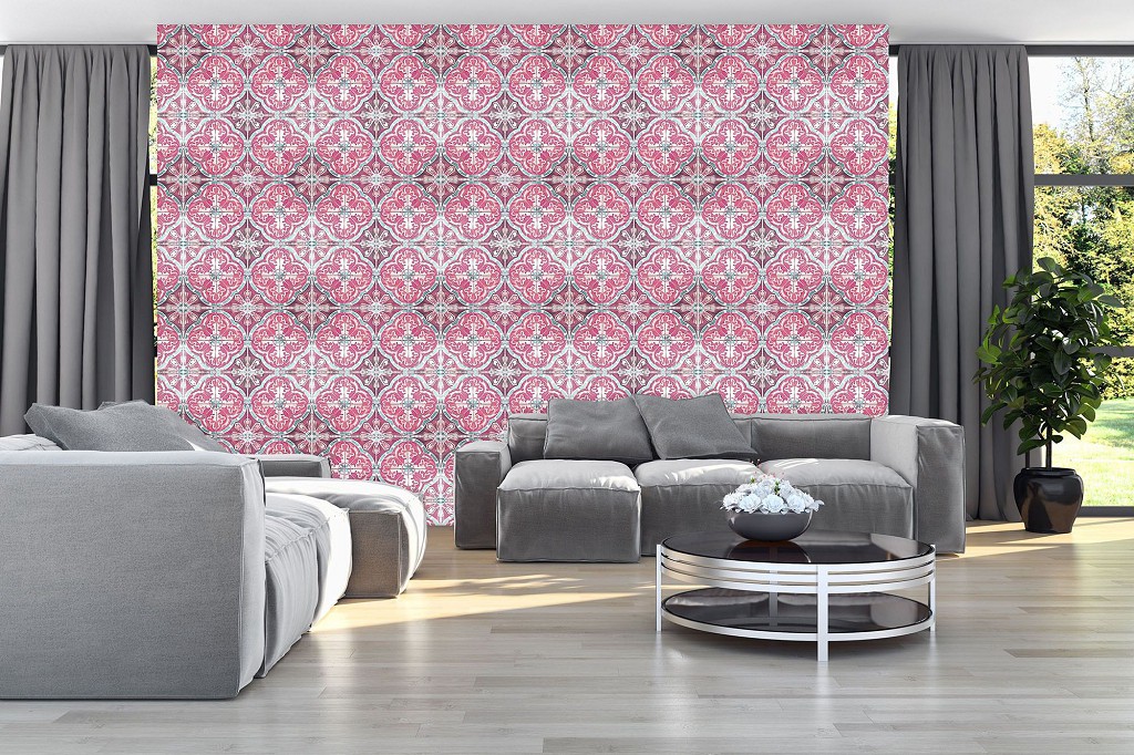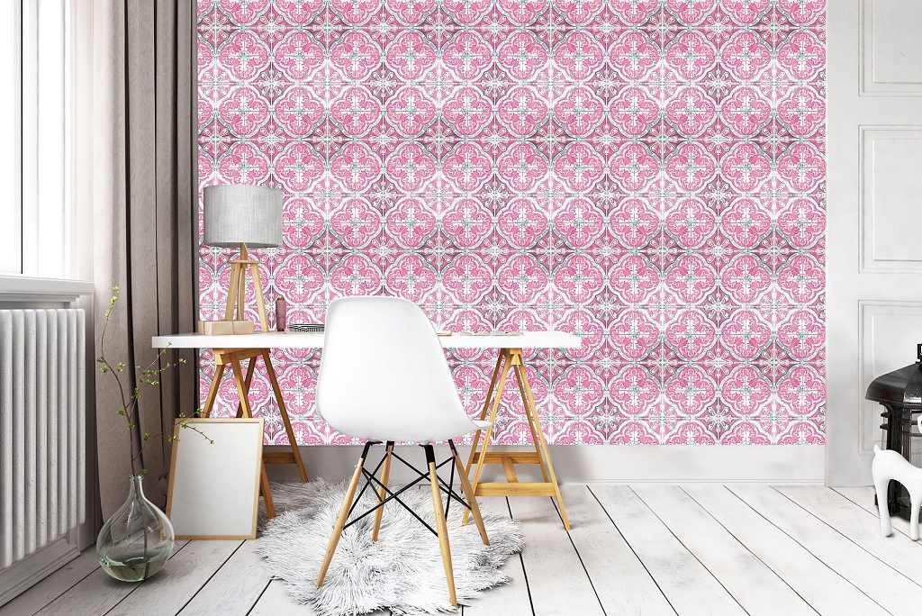 Отзывы о Красивые флизелиновые фотообои абстракция 254x184 см Розовый геометрический узор под плитку (10801V4)+клей