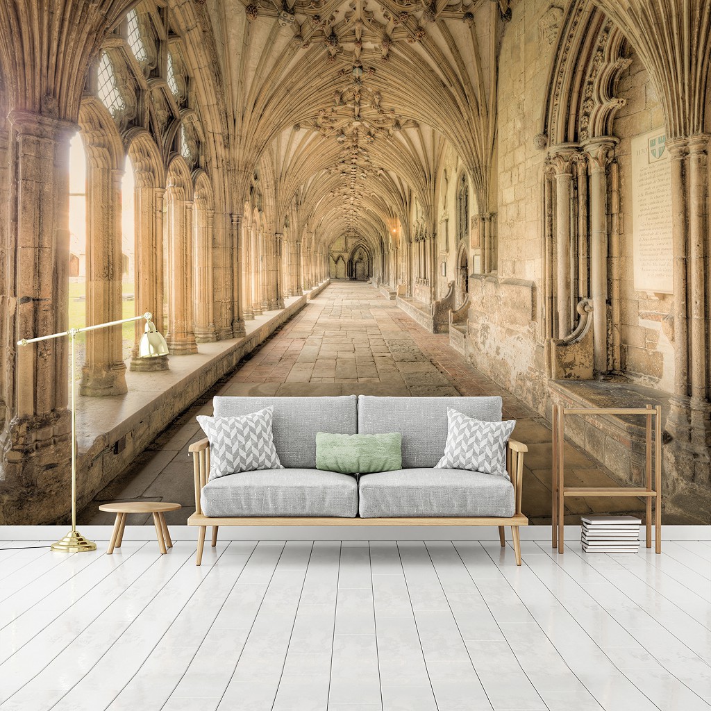 Флизелиновые фото обои город 254x184 см 3Д Старые арки и колонны (12916V4)+клей