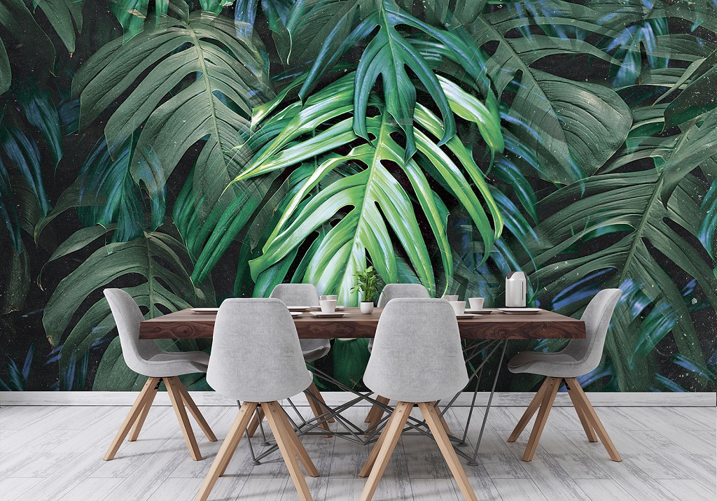 Фотообои 3Д флизелиновые 312 x 219 см Цветы - Листья зеленого гиганта (13711VEXXL)+клей