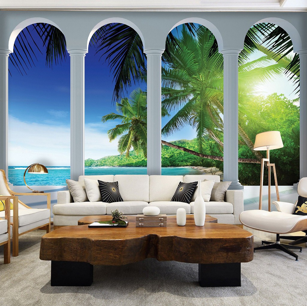 Отзывы о Флизелиновые фотообои пальмы 312x219 см 3Д Солнечный пляж за четырьмя арками (2356VEXXL)+клей