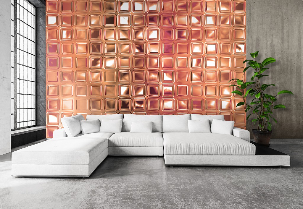 Флизелиновые фотообои на стену 312x219 см 3Д Стеклянные квадратики (12797VEXXL) +клей