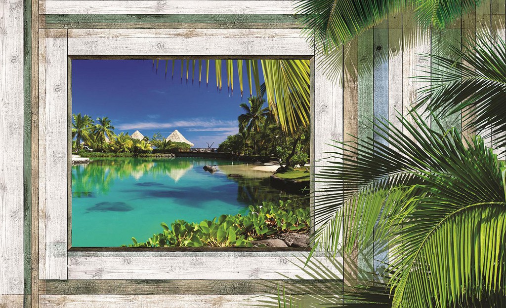 Отзывы о Флизелиновые фотообои фото природы 312x219 см 3Д Вид на Гавайи за деревянным проемом (1229VEXXL)+клей