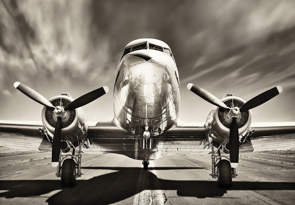 Флизелиновые фотообои 3д авиация 312x219 см Черно-белый самолет вблизи (11728VEXXL) +клей