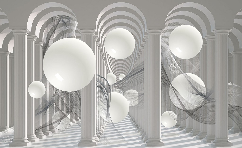 Отзывы о Популярные флизелиновые фотообои 3д тоннель коридор 312x219 см Белые шары и арки из колонн (3048VEXXL)+клей
