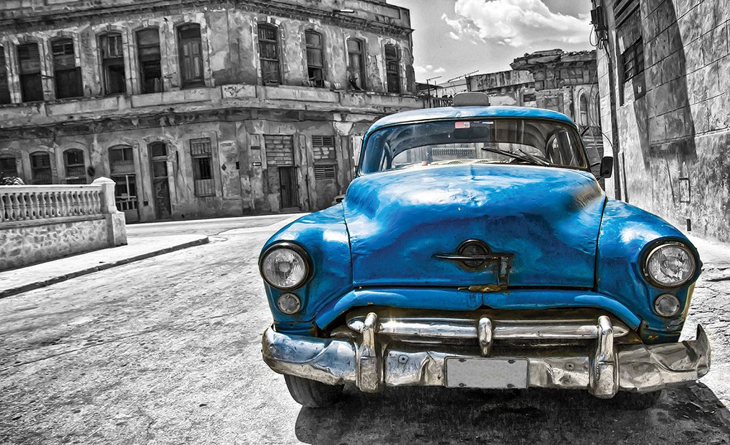 Флизелиновые фотообои город 312x219 см Куба - синяя винтажная машина (1178VEXXL)+клей