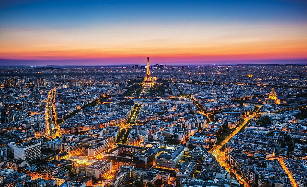 Флизелиновые фотообои города 312x219 см Вечерний Париж с высоты птичьего полета (1907VEXXL)+клей