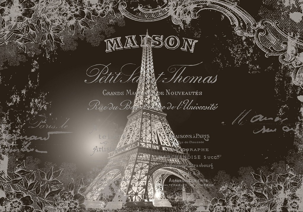 Отзывы о Флизелиновые фотообои на стену город 312x219 см Винтажная Эйфелева башня на черном фоне (2427VEXXL)+клей