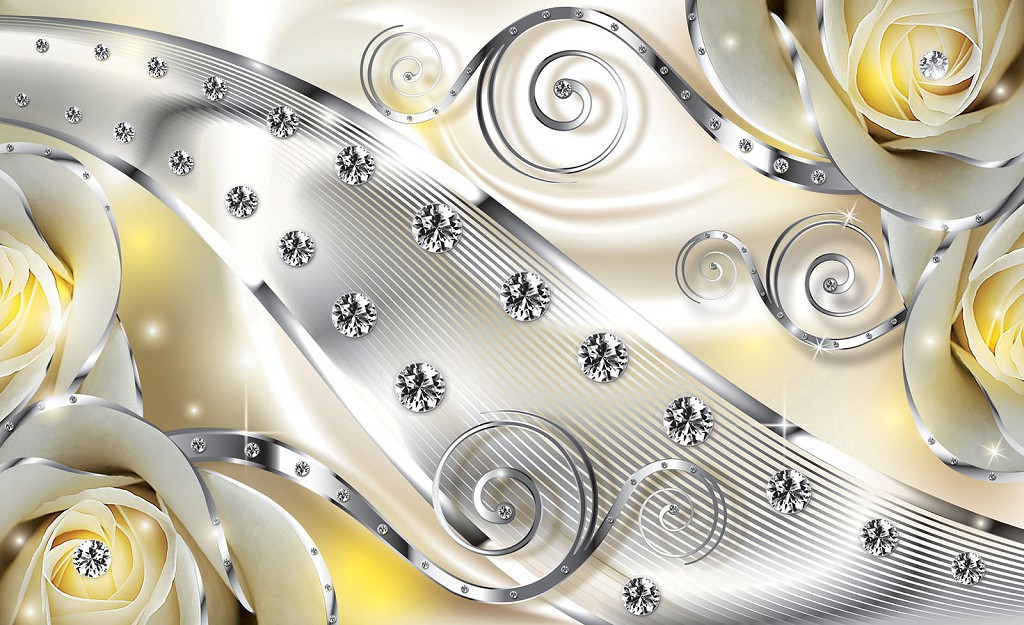 Отзывы о Красивые флизелиновые фотообои абстракция цветы 368x254 см 3Д Бутоны желтых роз - бриллианты и вензеля 2493V8+клей