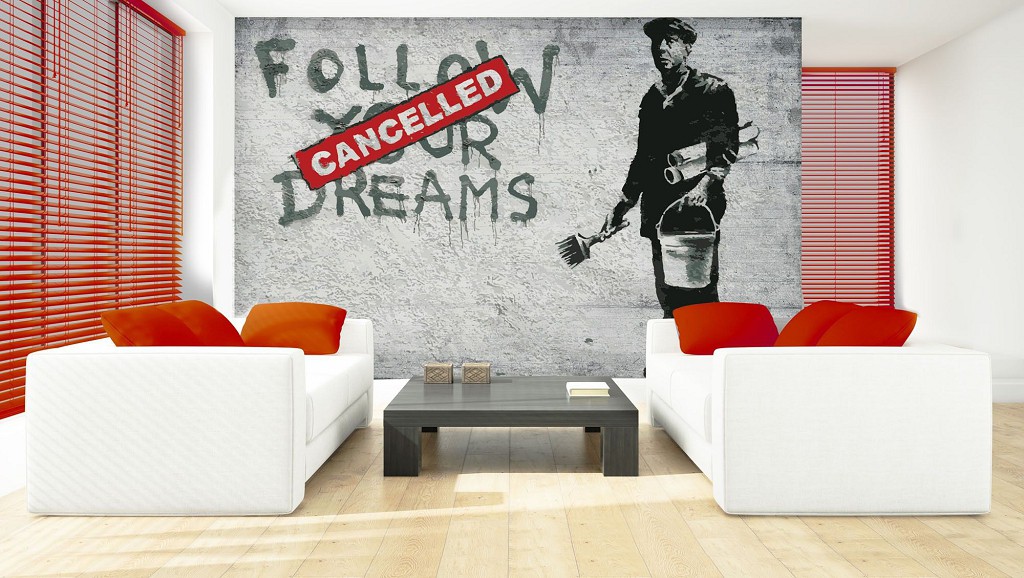 Искусство флизелиновые фотообои граффити бетон 368x254 см Бэнкси Следуйте за своими мечтами - Отменено 2901V8+клей