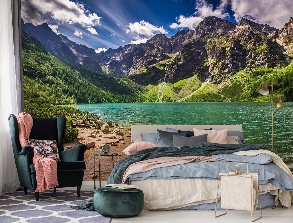 Отзывы о Популярные флизелиновые 3D фотообои 368x254 см Ландшафт Горы Озеро Берег Небо (14303V8)+клей