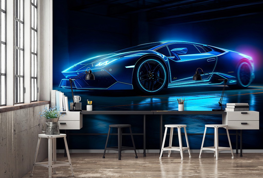 Флизелиновые фотообои 3Д про машины 368x254 см Роскошный неоновый автомобиль Ламборгини (14644V8)+клей