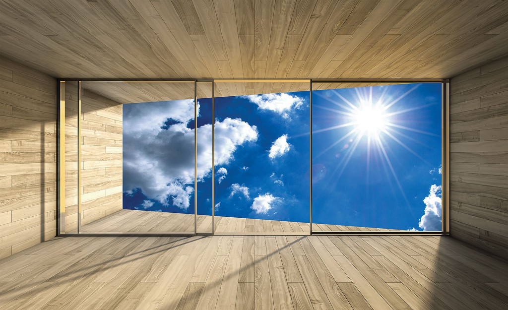Отзывы о Флизелиновые 3д фотообои красивые 368x254 см Вид из окна террасы на солнечное небо (3292V8)+клей