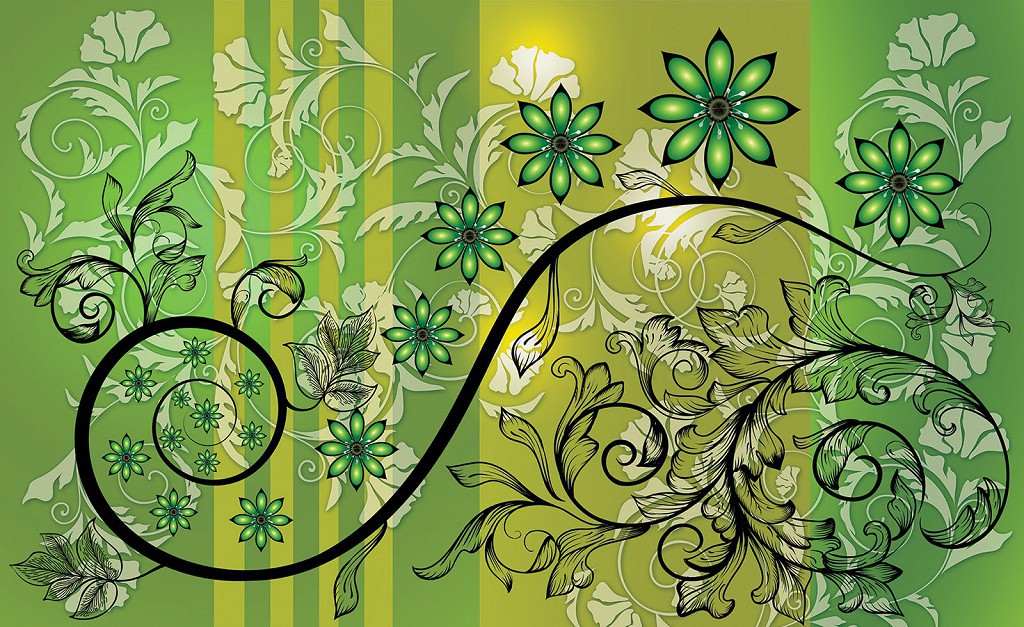 Флизелиновые фотообои в зал 368x254 см Зеленые цветы и черные стебли на зеленом фоне (1265V8)+клей