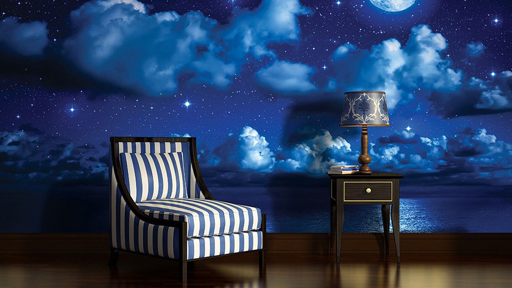 Отзывы о Флизелиновые фотообои луна 368x254 см Звезды и облака на ночном небе (1731V8)+клей