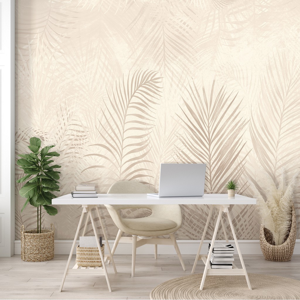 Отзывы о Флизелиновые фотообои 368x280 см Большие тропические листья на светло-желтом фоне (14132V10)+клей