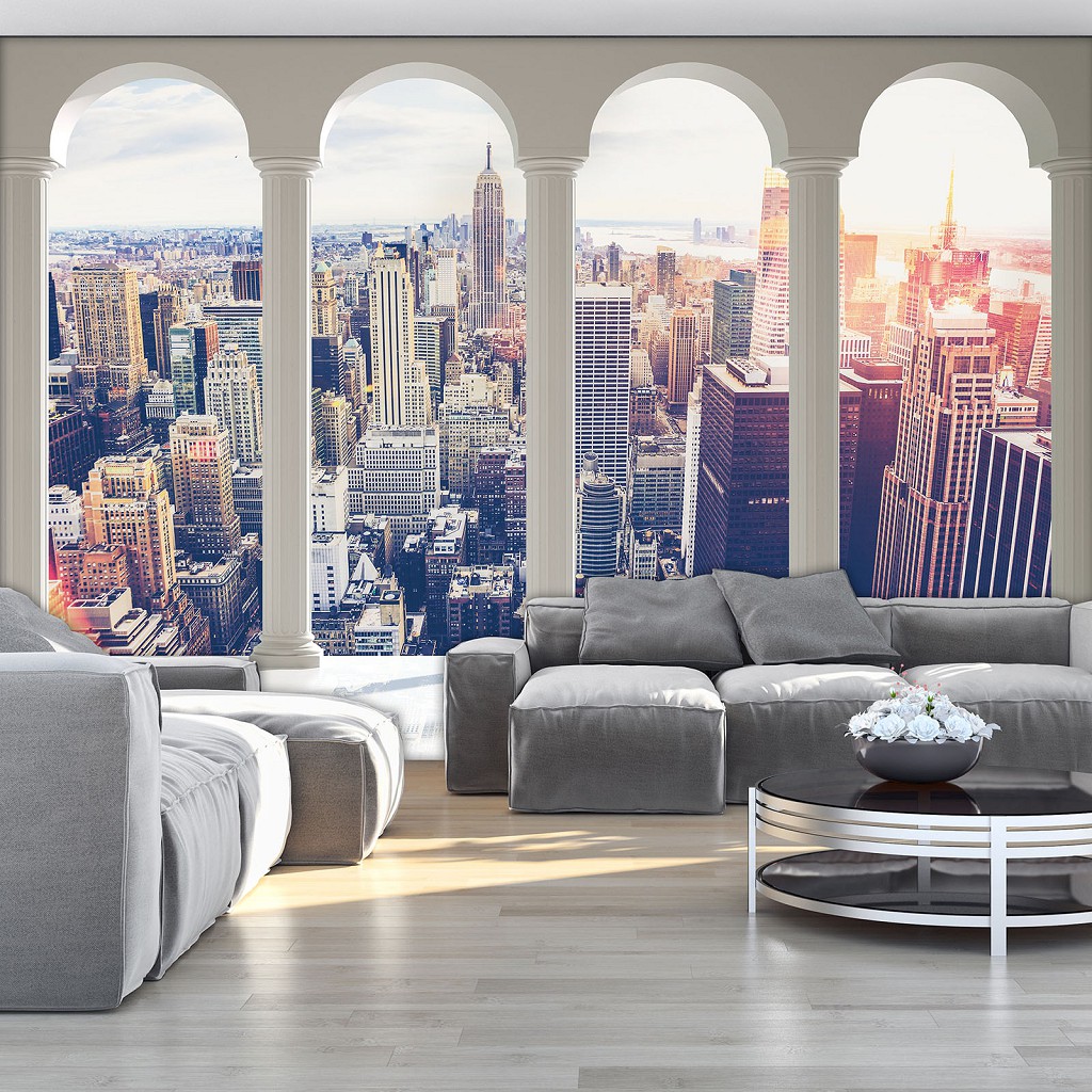 Флизелиновые фотообои город небоскребы 416x254 см 3Д Нью-Йорк за колоннами (12120VEXXXL) +клей