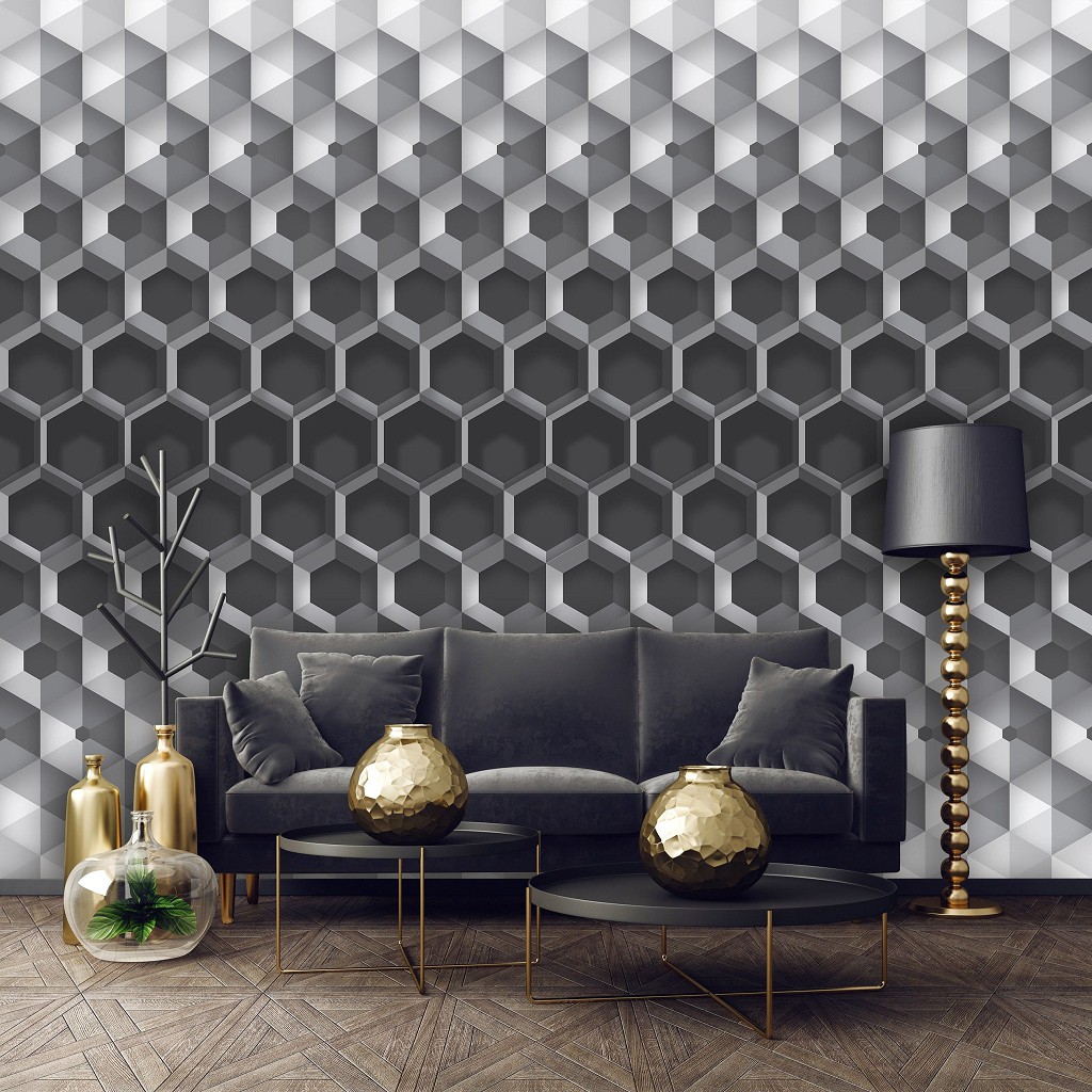 Отзывы о Три д соты флизелиновые фотообои 416x254 см 3D узор из серых шестигранников (10762VEXXXL) +клей
