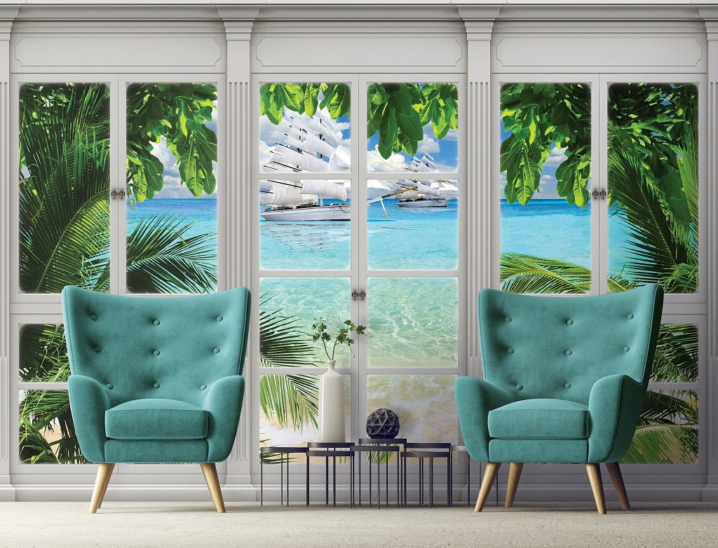 Отзывы о Флизелиновые фотообои лето море корабли 416x254 см 3D Вид из большого окна на парусники (10647VEXXXL) +клей